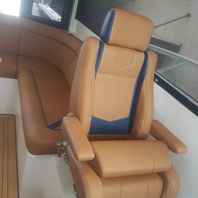 Clear Cut Upholstery can help design your custom helm, cockpit and exterior seating as well as cabin furniture and carpets in a variety of fabrics from leather to vinyl to macro-suede.